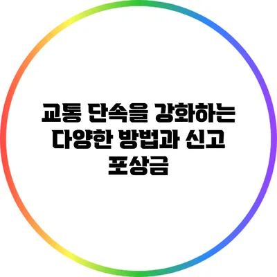 교통사고의 위험이 커지는 현대 사회에서, 교통 단속을 강화하는 다양한 방법과 신고 포상금 제도가 각광받고 있어요. 이러한 시스템은 단순히 법을 지키기 위한 것뿐만 아니라, 모두의 안전을 위한 중요한 조치임을 알 수 있습니다. 이 글에서는 교통 단속을 강화하기 위한 방법과 이와 함께 운영되는 신고 포상금 제도에 대해 자세히 알아보겠습니다.