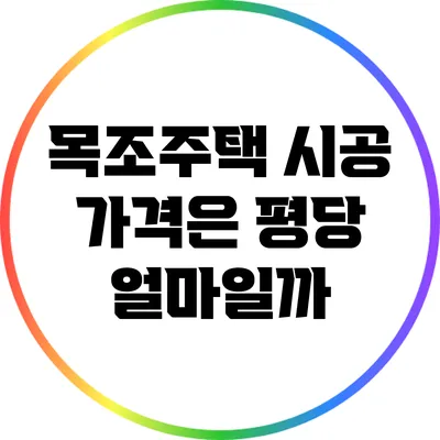 목조주택 시공 가격은 많은 요소에 따라 다르지만, 평당 가격은 약 200만 원에서 300만 원 정도로 볼 수 있어요. 여러 요인을 신중히 고려하여 예산을 세우는 것이 중요합니다. 주택 건설을 계획하고 계신다면, 다양한 시공사와 상담하며 예산을 잘 관리하는 것이 필요하답니다.