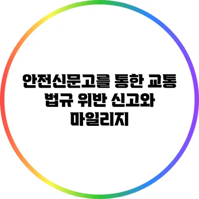 교통 법규 위반을 효과적으로 신고할 수 있는 방법이 있다면 어떨까요? 많은 운전자가 이 방법을 이용해 안전한 교통 환경을 만들고, 그 과정에서 보상까지 받을 수 있다면 더할 나위 없이 좋겠죠. 바로 안전신문고를 통한 교통 법규 위반 신고와 관련된 마일리지 제도에 대한 이야기입니다.